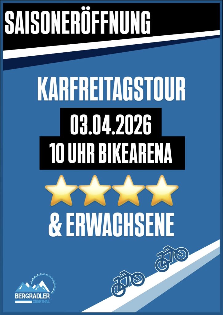 Auch in diesem Jahr starten wir traditionell am Karfreitag mit einer schönen gemeinsamen Tour in die Saison 2026. Die Strecke ist für Erwachsene und unserer 4- Sterner ausgelegt.