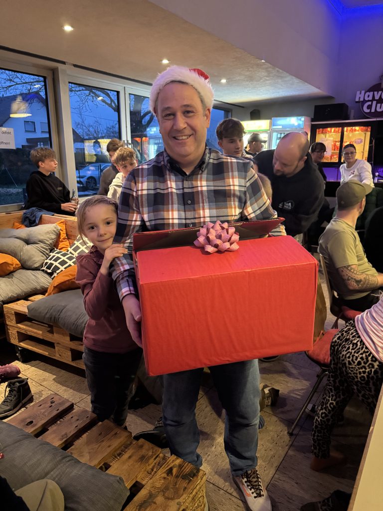 Nachwuchses an zu strahlen, als Jugendtrainer Jochen im Auftrag des Nikolauses die